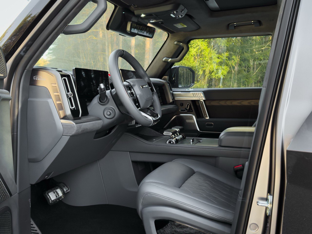 Технологии и Вседорожность: * Агрессивный «военный» стиль, светодиодная оптика в форме креста. * Режим «Краб» (движение по диагонали) и технология подруливающей задней оси. * Пневмоподвеска с регулировкой жесткости и высоты. * Преодоление бродов глубиной до 900 мм. * Система ночного видения и мониторинг пространства вокруг автомобиля. * Электрические выдвижные пороги.